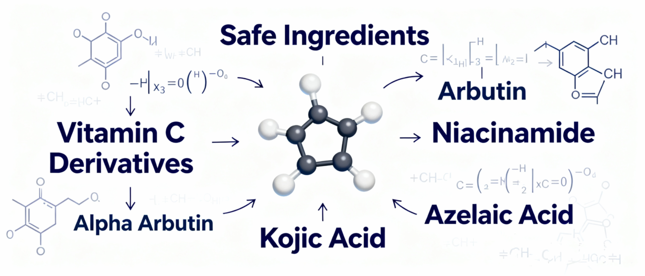 التخلي عن استخدام الهيدروكينون في المنتجات التي لا تحتاج إلى وصفة طبية بالكامل. يجب التركيز على المكونات ذات سجلات السلامة الراسخة وآليات العمل الواضحة: