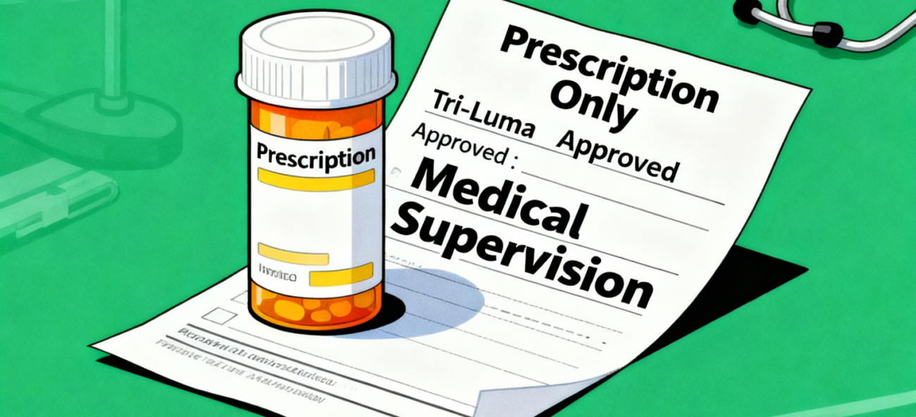 في الوقت الحالي، المنتج الوحيد المعتمد من إدارة الغذاء والدواء الأمريكية الذي يحتوي على الهيدروكينون في الولايات المتحدة هو الدواء الذي يُصرف بوصفة طبية تري-لوما, معتمد فقط للعلاج قصير الأمد للبقع الداكنة المتوسطة إلى الشديدة المرتبطة بالكلف.