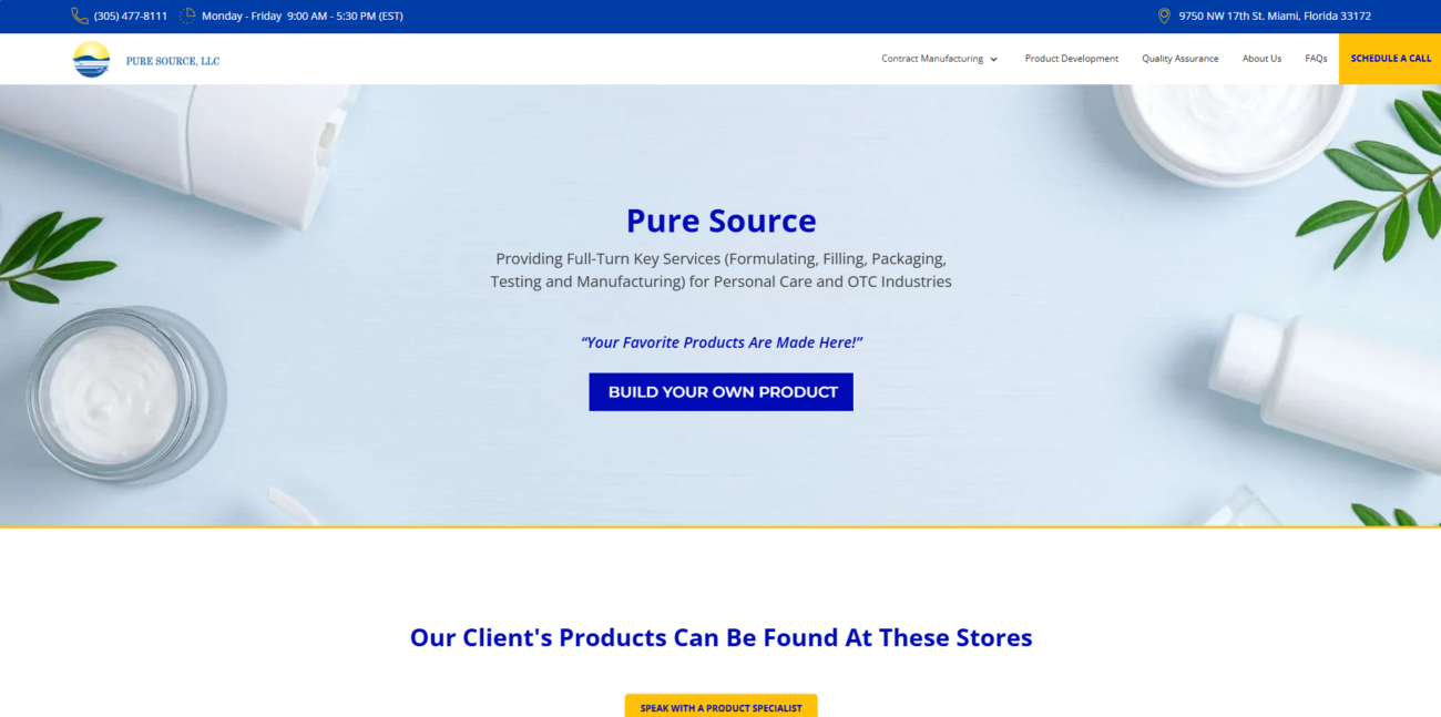 Pure Source is a US-based contract manufacturer with nearly 30 years of history. Its official website clearly states its focus on the development and production of natural, organic, and eco-friendly sun care products. It is a reliable private label sunscreen manufacturer for brands looking to emphasize natural ingredient sourcing and environmental responsibility (such as reef safety).